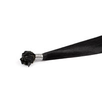Ultra Tips are an individual method, these are the flattest method of hair extensions on the market, you really can not feel these in the hair, easy to hide while wearing different hair styles. Their fan like shape gives ultra coverage/thickness. There attached strand by strand with a tiny little ring holding your natural hair and the hair extension together, the ring is smaller than a grain of rice.